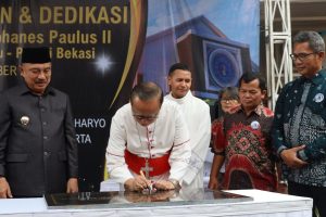 KOTABEKASI, Berita Utama – Wakil Wali Kota Bekasi Abdul Harris Bobihoe hadiri acara pemberkatan Gereja Katolik Santo Yohanes Paulus II, Rawalumbu, Kota Bekasi.